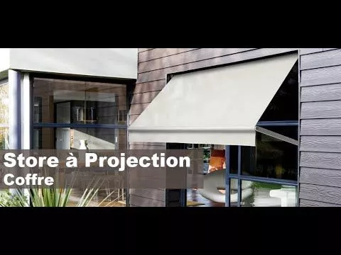 Store à projection, appelé aussi store à l'italienne. La toile s'enroule dans un coffre tout aluminium. Ce store se fixe soit entre murs (en tableau), soit de face. La toile se projette à l'aide de 2 bras en aluminium à 90°, 120° ou 180° selon votre choix. Vous arrêtez sa course là où vous le souhaitez. Large choix de toiles anti-chaleur, résistantes aux UV. Pour une protection solaire renforcée, nous vous conseillons les toiles micro-aérées SOLTIS 92, facile à nettoyer et agréable pour le confort visuel. Fabrication sur mesure, en France, garantie 5 ans.