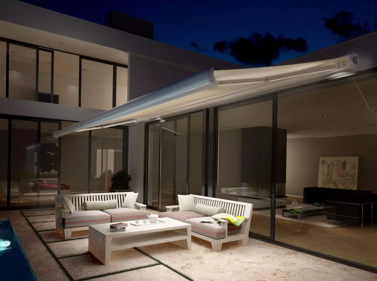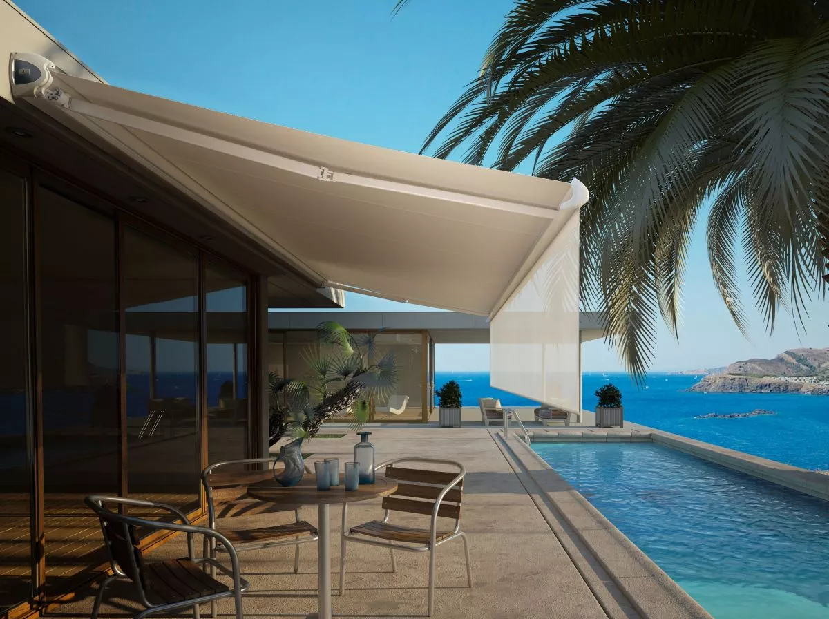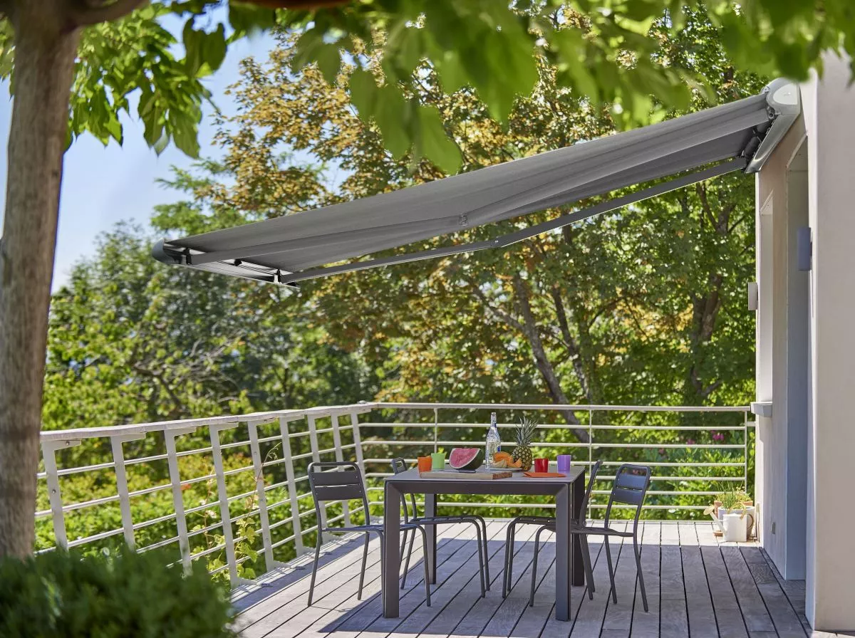 Le store banne coffre Ultima est l'un des fleurons de la gamme. Fabriqué en France à partir des meilleurs composants, il est extrêmement robuste. Joli Design, qualité de fabrication, nombreuses options utiles telles que le lambrequin enroulable, ce store banne coffre existe aussi en version éclairage par leds. Un ruban leds intégré sous les bras vous permettra de profiter de votre store le soir tout en éclairant la table. Par ailleurs, grâce à ses bras articulés aux ressorts puissants, la toile couvre de grandes dimensions jusqu'à 4m de profondeur. Investissez dans votre maison et vivez en tout confort sous le store Ultima.