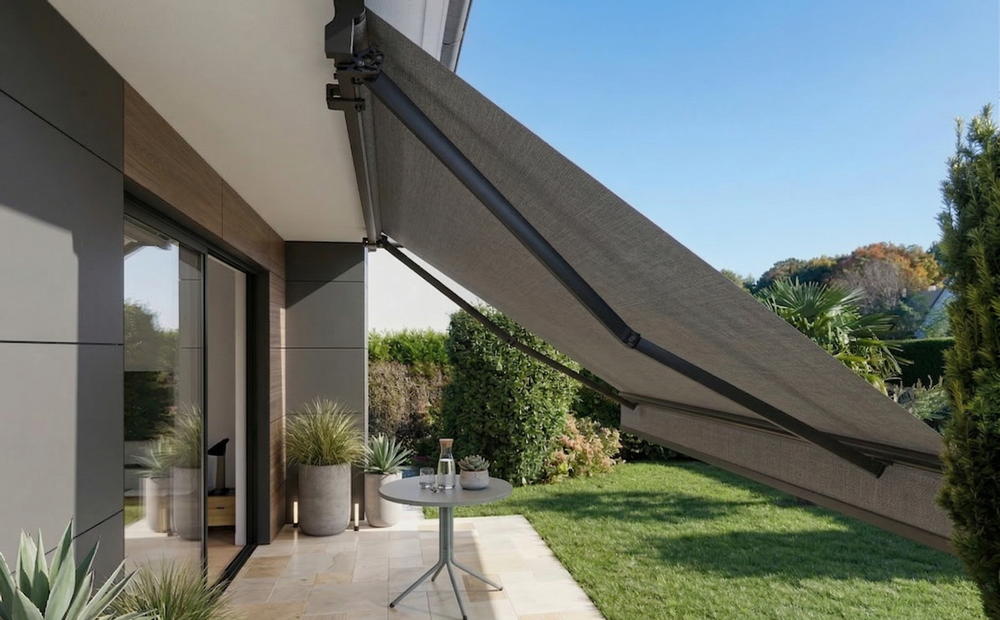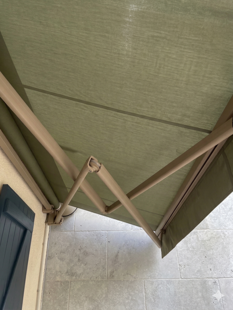 Capteur-vent, lambrequin enroulable manuel, auvent aluminium, impression sur lambrequin, rallonge câble moteur, chargeur de batterie ...