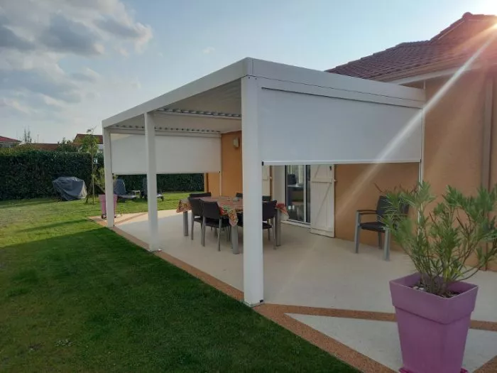 Grâce à sa confection spécifique, la toile de ce store vertical extérieur avec coffre est parfaitement maintenue en tension dans les coulisses par un système de demi-fermeture éclair. Ce store est conçu pour résister à des vents très forts, jusqu'à 100 km/h. C'est pourquoi il est souvent utilisé en tant que store pergola. Très efficace, il sera facile à manœuvrer grâce à son moteur conçu lui aussi pour résister. Vous choisirez entre des toiles tamisantes ou opaques pour en faire un store occultant.