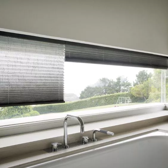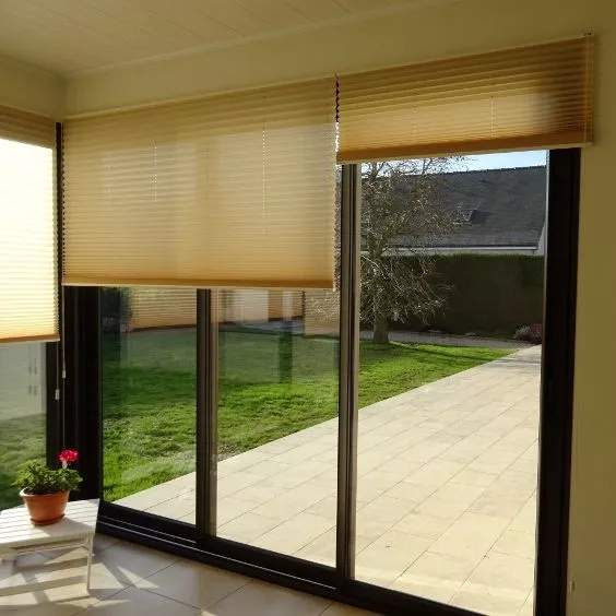 Les stores plissés sont raffinés et apporteront un style japonisant à votre intérieur. Tamiser la lumière, occulter pour faire le noir, vous trouverez une multitude de matières et de coloris. Certains tissus sont aussi spécifiques pour vous protéger de la chaleur: leur face nacrée ou aluminium côté vitre réfléchit le soleil. D'autres tissus tels que les nids d'abeille conviennent parfaitement pour en faire un store occultant. Un des avantages de ce store est son encombrement réduit en position haute. Marque Bandalux.