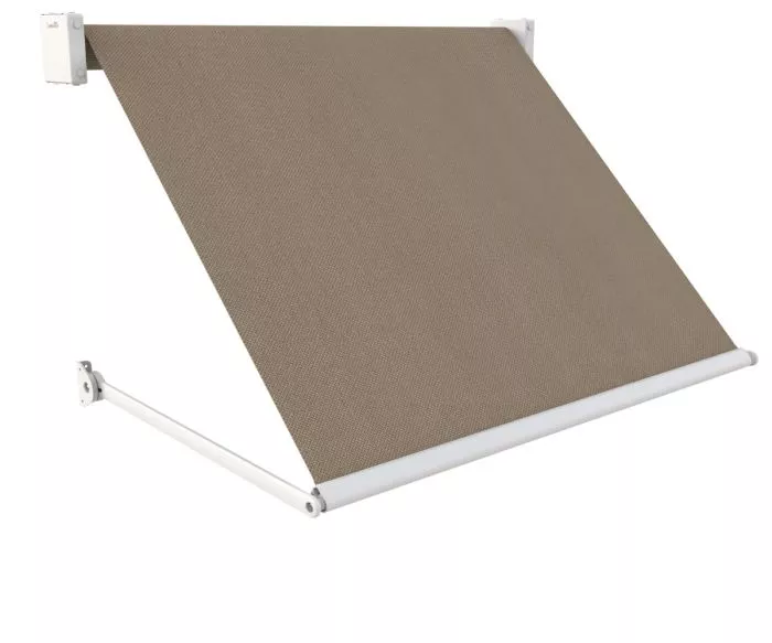 Store à projection, sans coffre. Protection de la toile suffisante pour les poses dans l'encadrement de la fenêtre. Sa toile se projette par des bras latéraux jusqu'à 180°. Il se pose entre murs, au plafond ou de face sur les montants de la fenêtre. Ce store à projection se manipule au choix par un cordon, une manivelle ou un moteur. Découvrez les toiles SOLTIS 92 pour leur qualité thermique, leur transparence très agréable et leur solidité (encore plus que l'acrylique !).