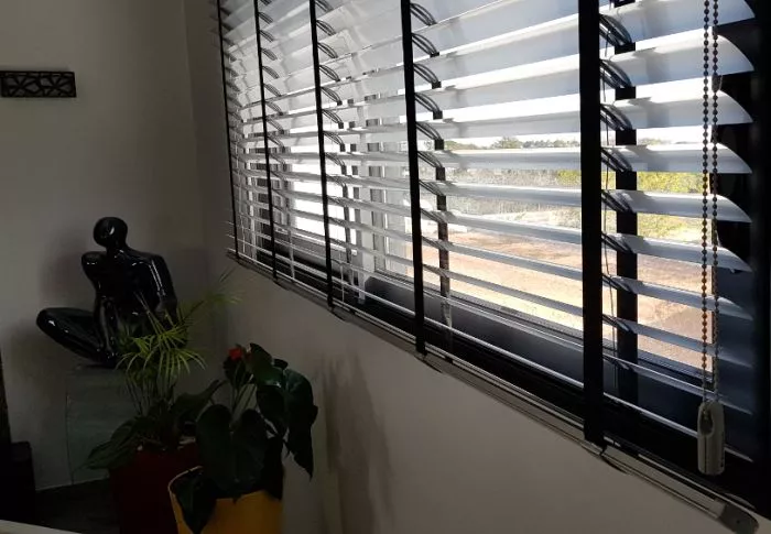 Store vénitien aluminium avec lames de 50mm pour un style Loft et une ambiance Factory. Avec ses maxi lames, ce store vénitien donnera du relief à votre pièce. Fabrication robuste dédié aux grandes fenêtres. Son dosage fin de la lumière en fait un store très efficace pour se protéger de la chaleur et ne plus être gêné par les regards extérieurs. Marque Bandalux.