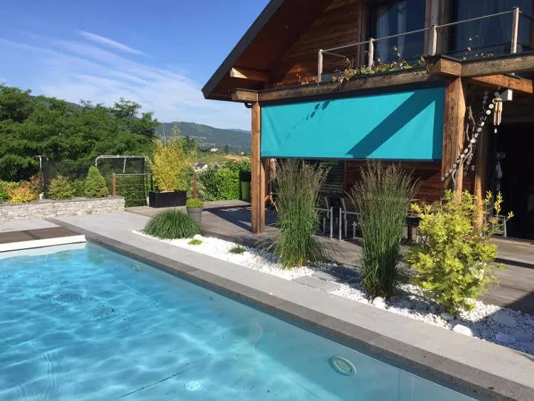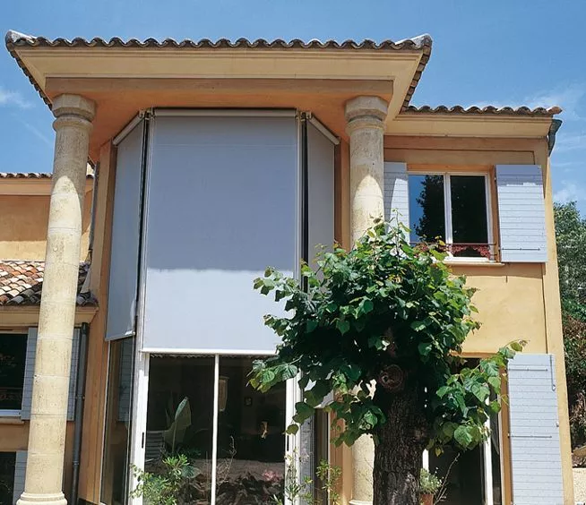 Store Vertical Extérieur pour couvrir de grandes baies vitrées. Excellente protection solaire notamment quand il est équipé des tissus Soltis micro perforés, il donne un style moderne et unique à votre maison. Par ailleurs, ces tissus Soltis sont transparents et permettent de voir vers l'extérieur. Ce store extérieur se manipule à l'aide d'une manivelle ou d'un moteur. Entrez dans la modernité et le confort avec ce store enrouleur extérieur qui peut aussi servir de store de pergola.